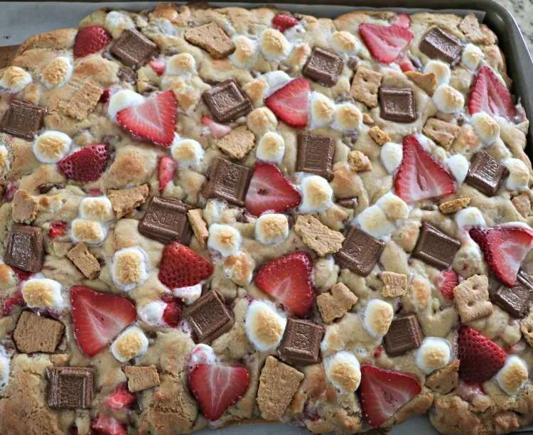 Strawberry S’mores Cookie bars are gooey, chocolaty, and oh so delicious! Thank you to Procter & Gamble for sponsoring this post.