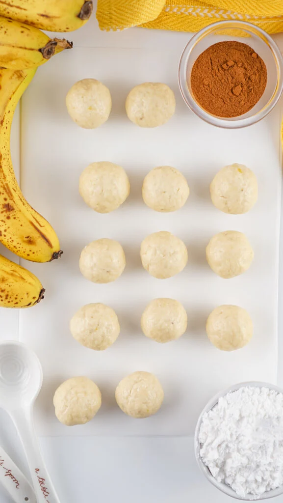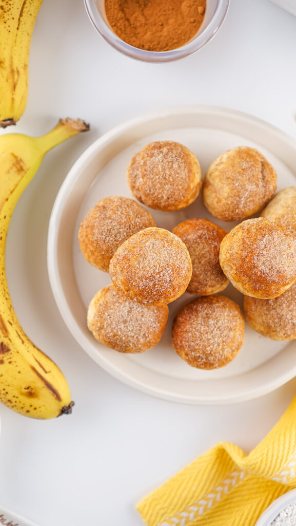 This recipe is easy, non-intimidating, and a lot of fun to make. You’ll get deliciously fluffy 2 ingredient banana donut holes without the hassle of frying.