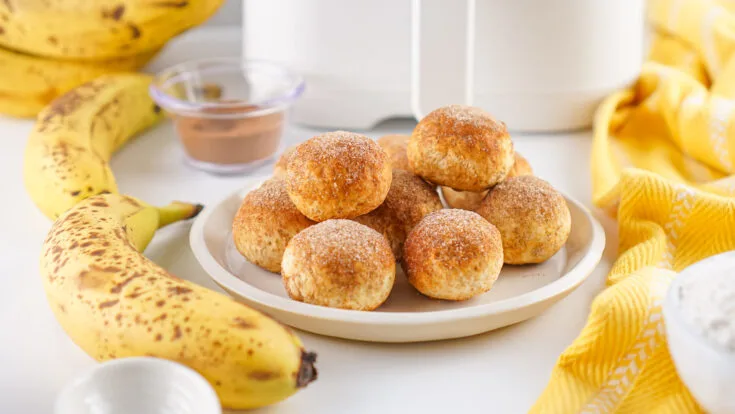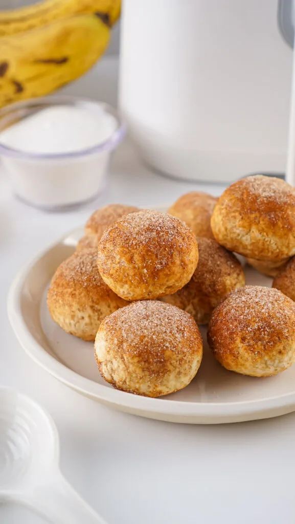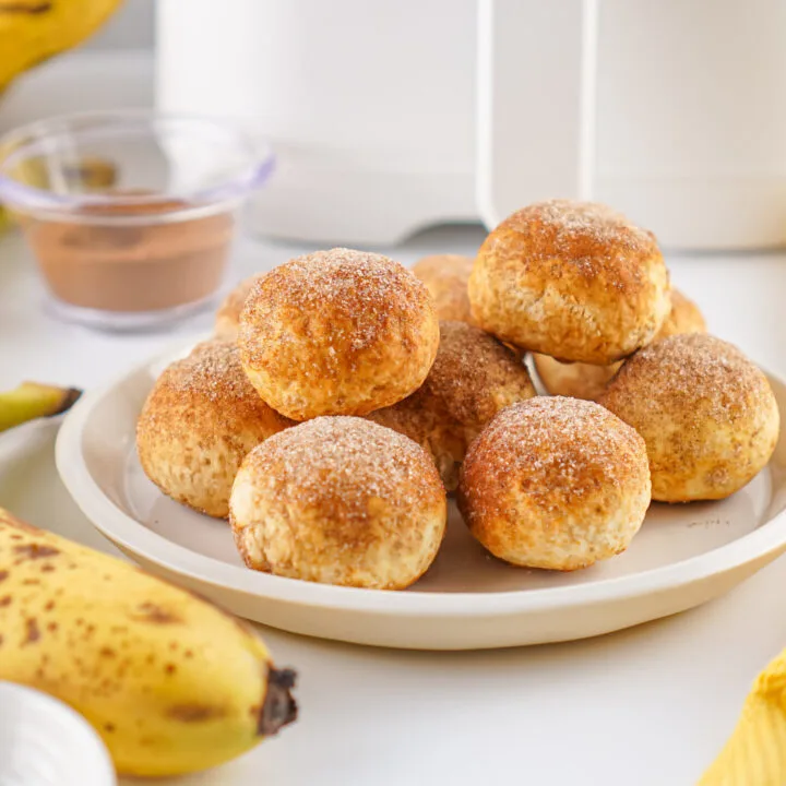 Air Fryer Banana Donut Holes are lightly crisped on the outside, soft and fluffy on the inside, and packed with banana flavor thanks to a single ripe banana in the dough.
